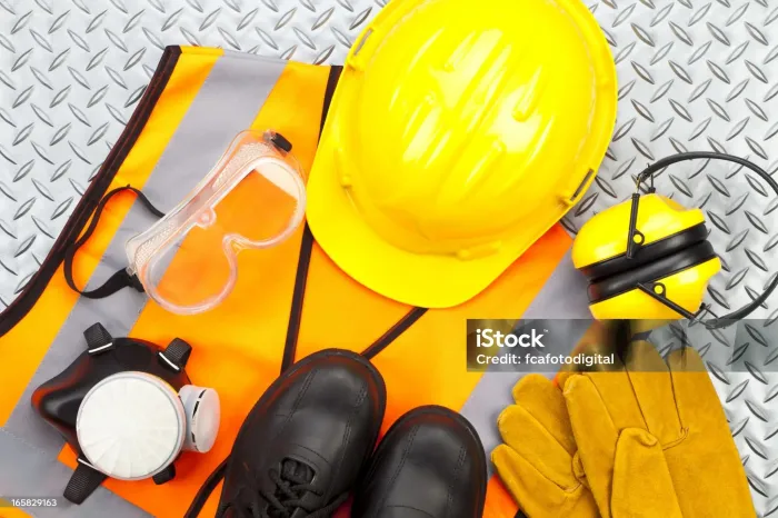 - Botas de segurança: protegem os pés de quedas, impactos e objetos cortantes;